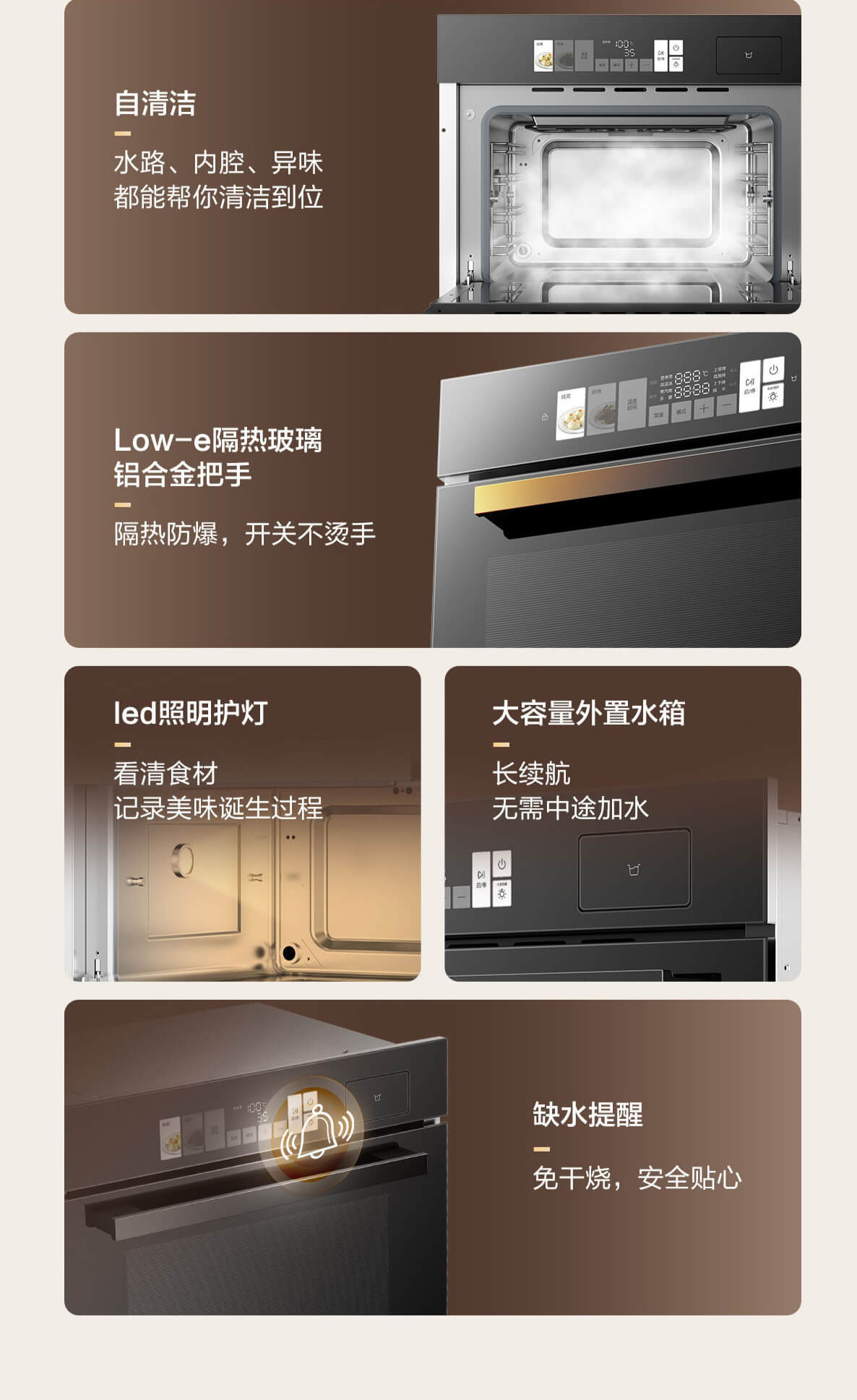 靈犀炫彩大屏,48L大容量,十二大專(zhuān)業(yè)蒸烤模式,上下雙管烤,直噴瀑布蒸汽,全304食品級(jí)不銹鋼,一鍵高溫殺菌