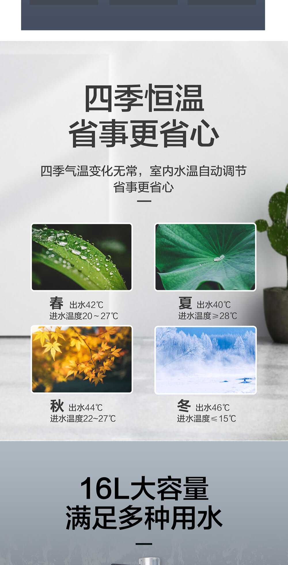 智能恒溫,無氧抑菌水箱,分段燃燒,低氣壓啟動,節能高效。